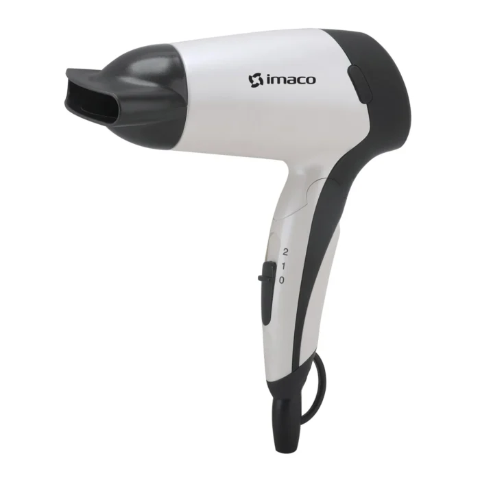 SECADORA DE CABELLO IMACO HD1000 – NEGRO/BLANCO ¡Resalta tu look todos los días! Con la nueva secadora HD1000 podrás acomodar y dar volumen a tu cabello de forma fácil y rápida. Se trata de una secadora en color negro y blanco con un diseño compacto, ideal para llevarla en la bolsa de viaje; además, cuenta con 2 niveles de temperatura y una rejilla de ventilación. ¡No dejes pasar la oportunidad y obtén esta herramienta básica de la marca Imaco al mejor precio en Ripley.com! CARACTERÍSTICAS -Portátil y plegable. -Mango de goma ergonómico. -2 niveles de temperatura. -Rejilla de ventilación. -Diseño compacto, sistema de seguridad.